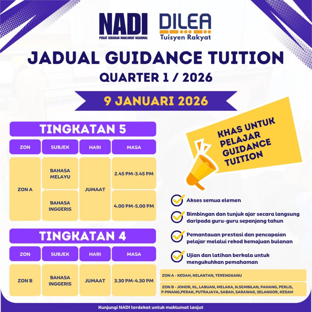 #NADI#DILEA#TuisyenRakyat#GuidanceTuition#Tingkatan4#Tingkatan5#BahasaInggeris#BahasaMelayu