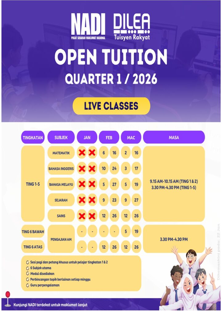 Jadual Terkini Open Tuition Q1
