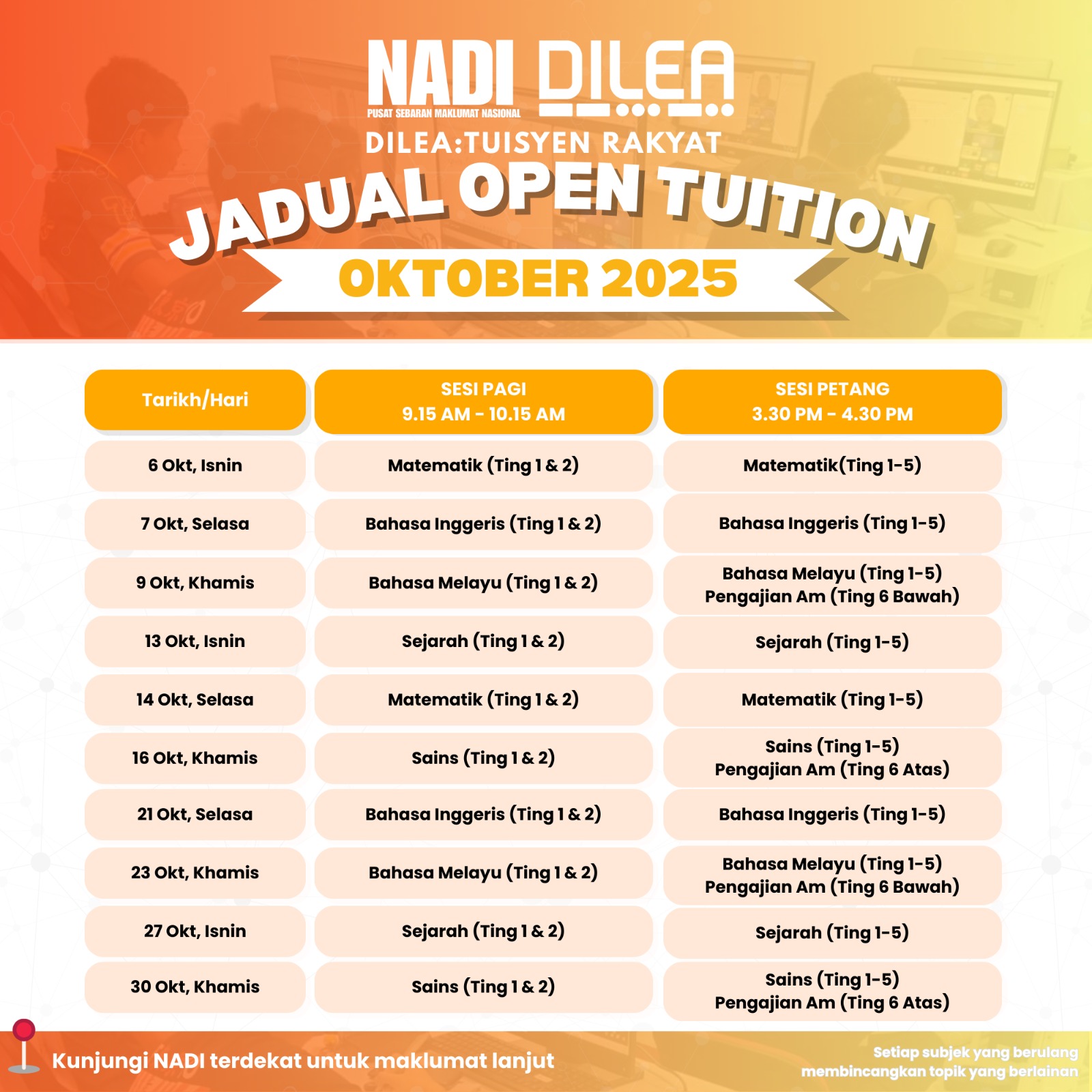 Program Khas Merdeka & Hari Malaysia @ NADI Jom ramai-ramai datang ke NADI BERIS KUBOR BESAR untuk sambutan istimewa sempena Hari Merdeka & Hari Malaysia @ NADI Tarikh: 6 September 2025 (Sabtu) Masa: 10.00 pagi – 4.00 petang. Lokasi: NADI […]